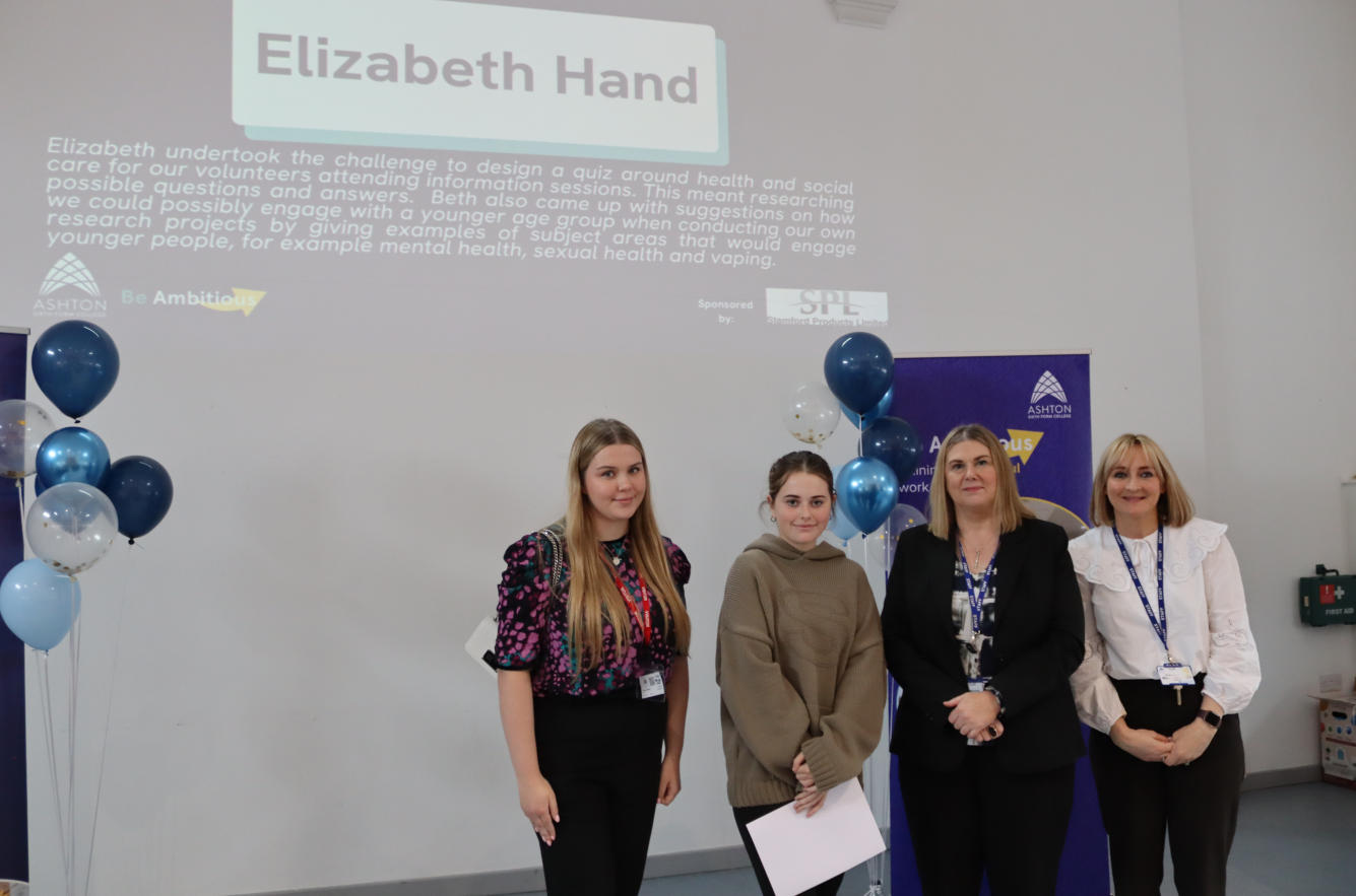 "Elizabeth undertook the challenge to design a quiz around health and social care for our volunteers attending information sessions. This meant researching possible questions and answers. Beth also came up with suggestions on how we could possibly engage with a younger age group when conducting our own research projects by giving examples of subject areas that would engage younger people, for example mental health, sexual health and vaping."