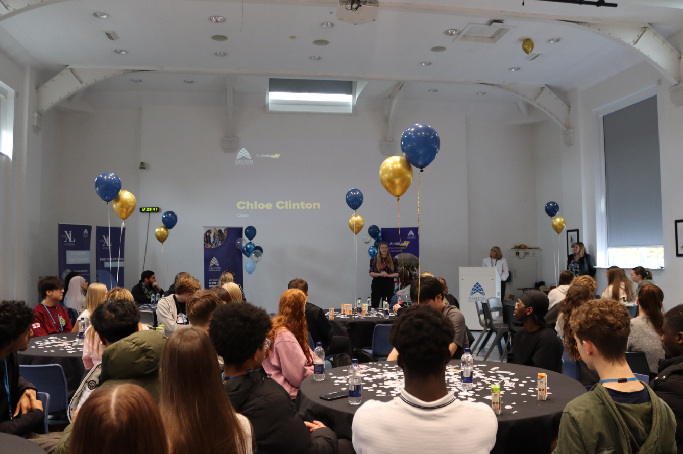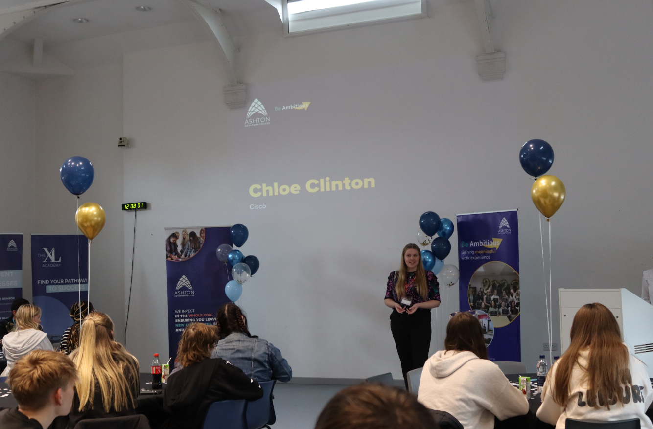 The event opened with a warm welcome from our Centre Principal, Lisa Richards, who spoke about the significance of the Be Ambitious programme and its role in helping students achieve their goals. She was followed by guest speaker and former student Chloe Clinton, who shared her inspiring journey. While studying at Ashton, Chloe completed a work experience placement with the global technology company Cisco. Her dedication and enthusiasm during the placement led to a permanent role at Cisco, where she continues to work today. Chloe encouraged students to embrace every opportunity for work experience, highlighting how valuable transferable skills can be in shaping their future careers.