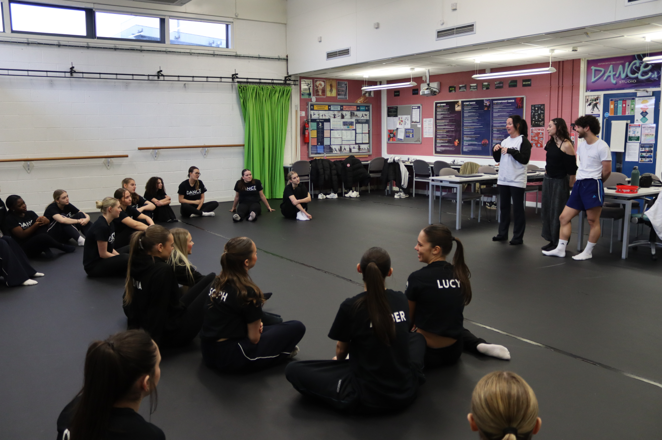 Dance alumni Kristian Darby and Emma Wolstenholme led an energising contemporary dance session, while former Drama student Lois Broadbent delivered an interactive acting and performance workshop, highlighting the wide range of progression routes available within the performing arts.