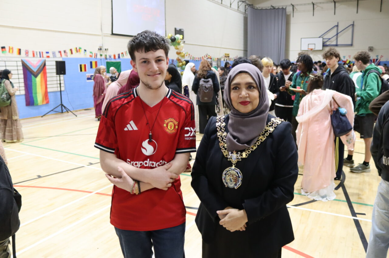 The college was also honoured to welcome The Worshipful Civic Mayor of Tameside, Councillor Shibley Alam, and her Consort, Mohammed Khairul Alam. The Mayor and Consort took time to meet students and staff and joined in with the celebrations.