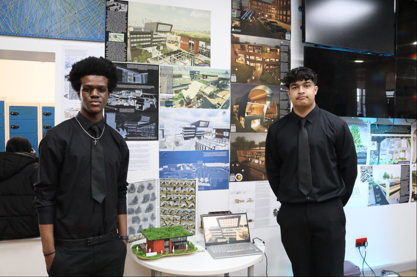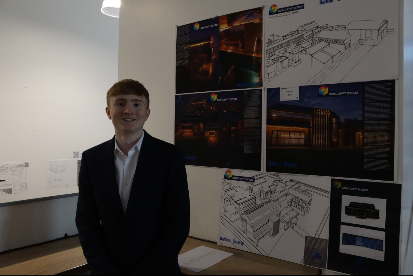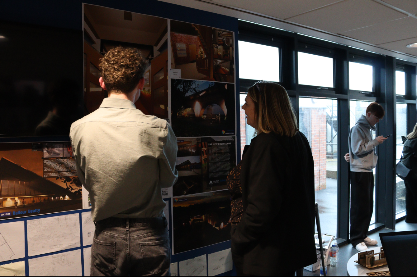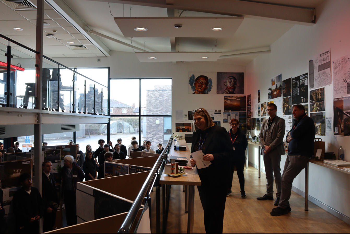 Throughout the project, they have followed the full design process, from early ideas and sketching through to refined designs and model making using specialist equipment. The final outcomes highlight impressive creativity, problem-solving and technical ability. The exhibition featured 3D models of the reimagined campus, alongside graphics and video mock-ups that brought students’ designs to life.