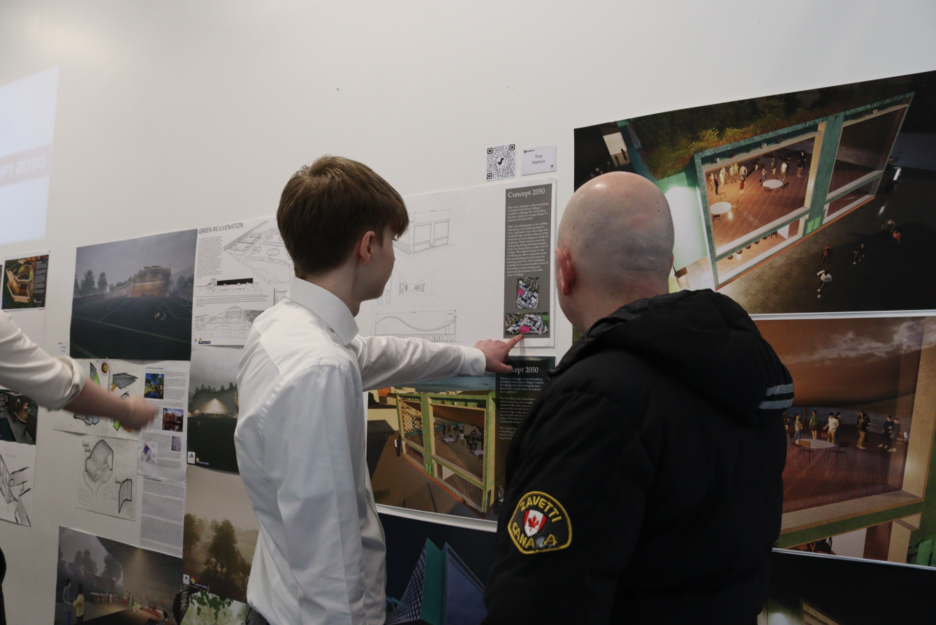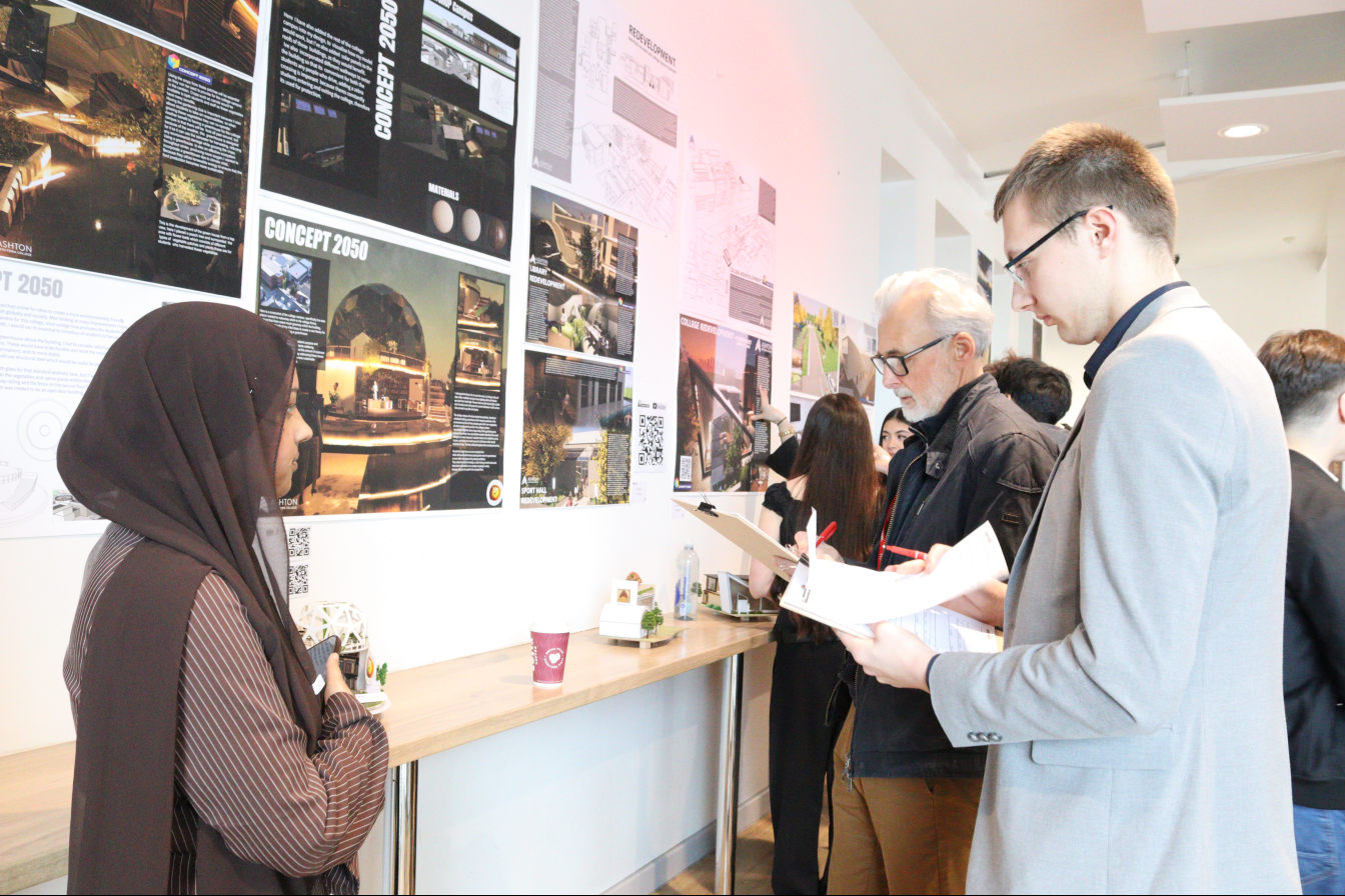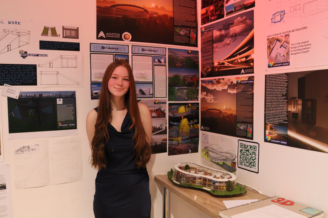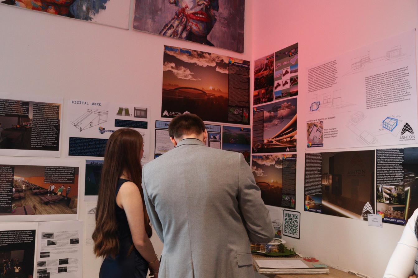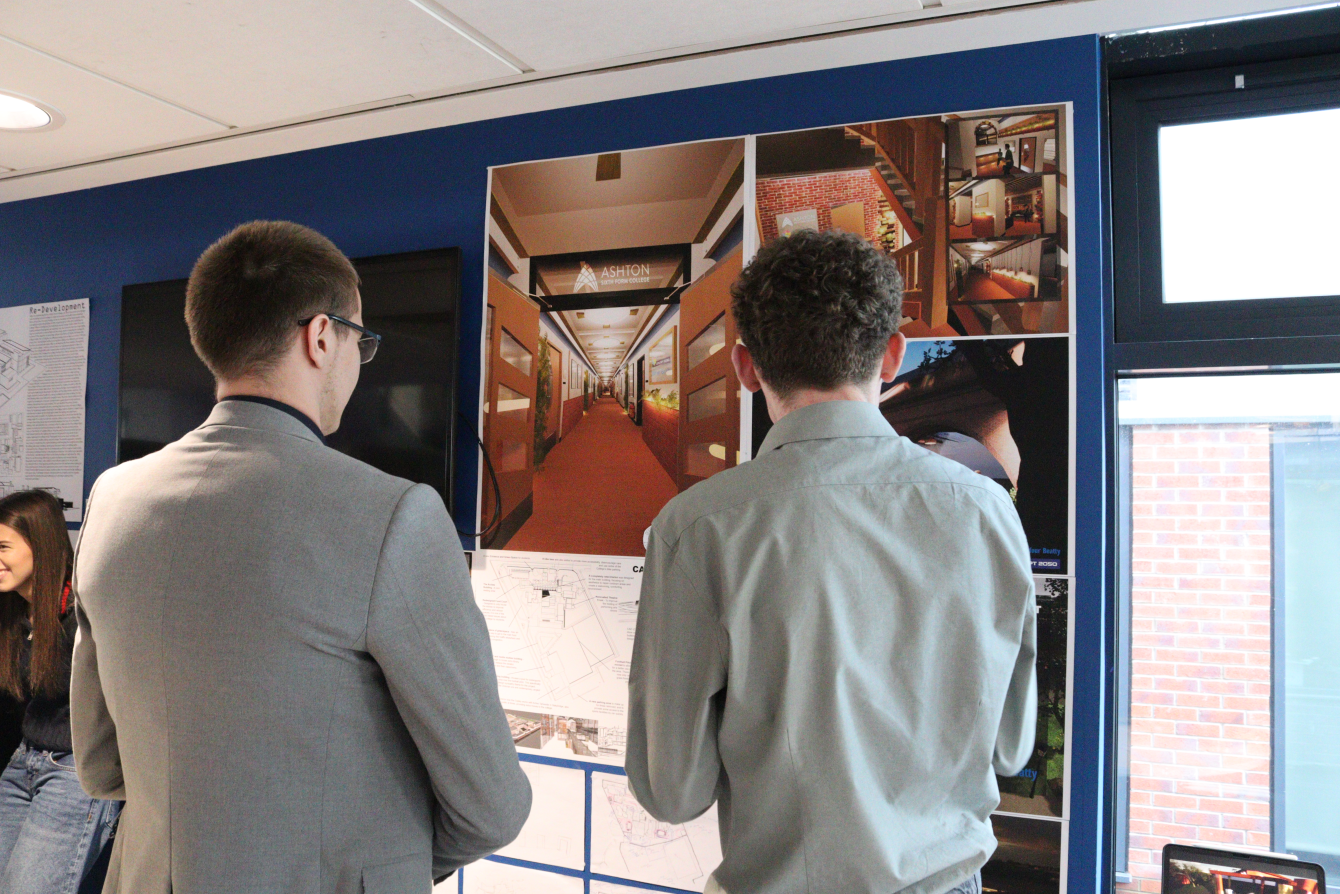Throughout the project, they have followed the full design process, from early ideas and sketching through to refined designs and model making using specialist equipment. The final outcomes highlight impressive creativity, problem-solving and technical ability. The exhibition featured 3D models of the reimagined campus, alongside graphics and video mock-ups that brought students’ designs to life.
