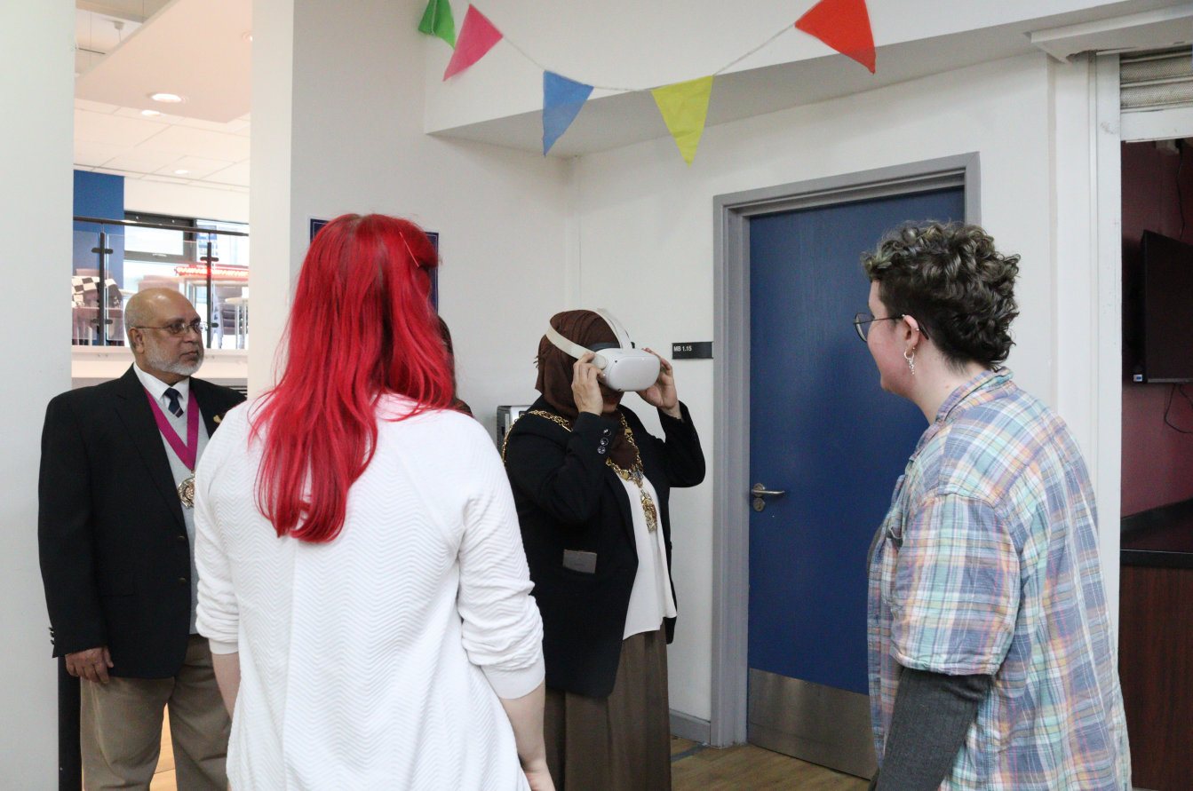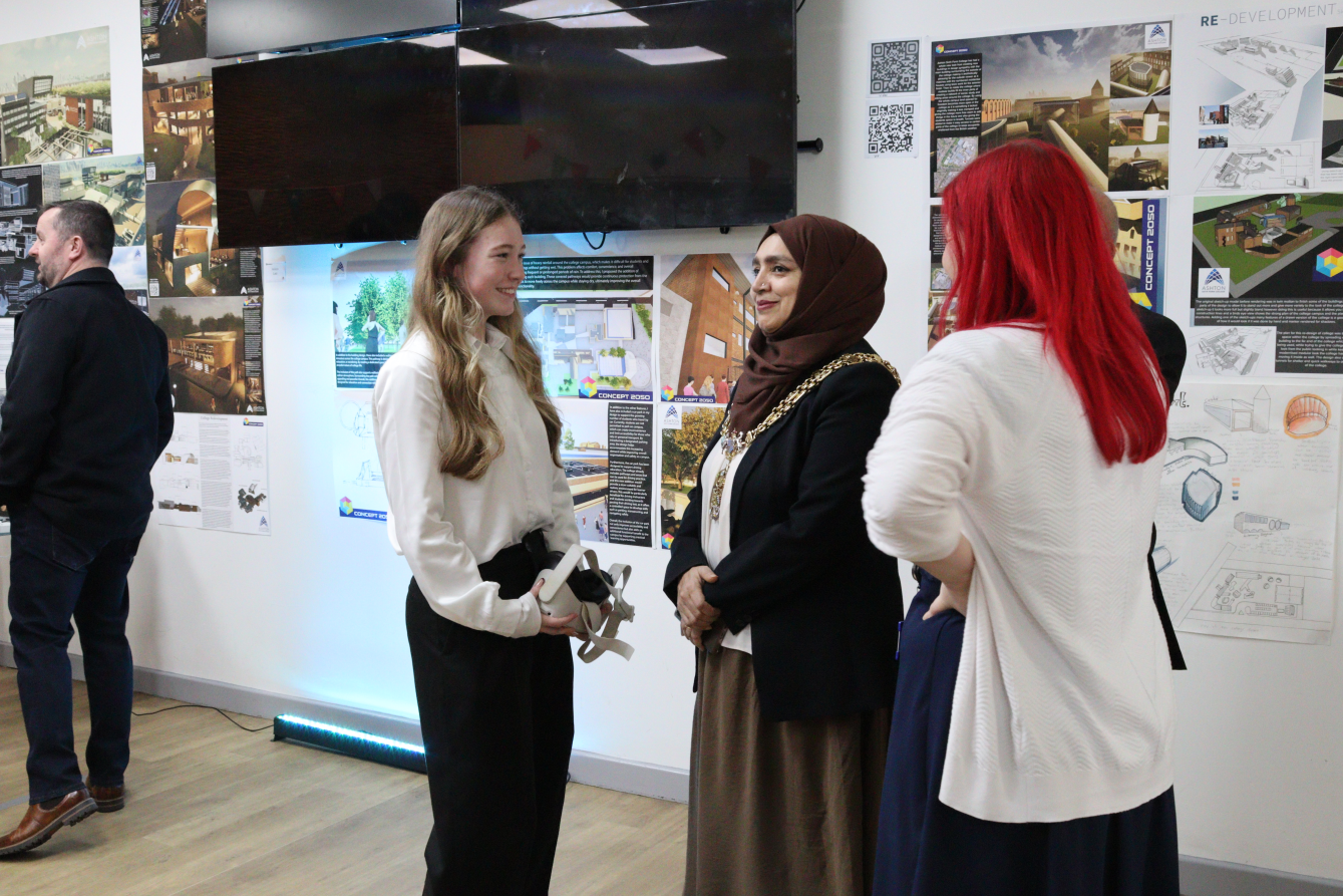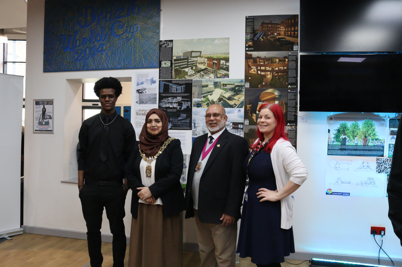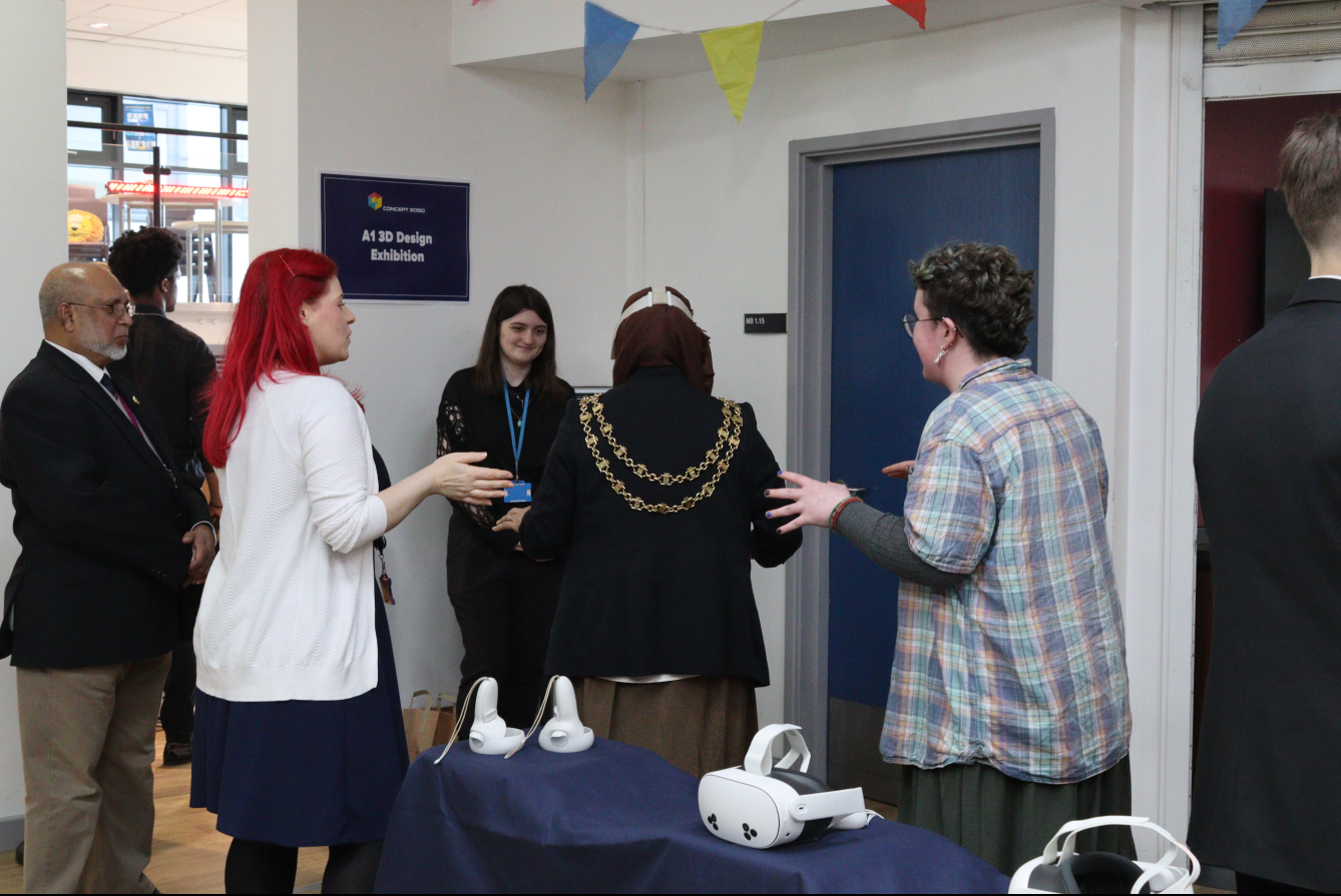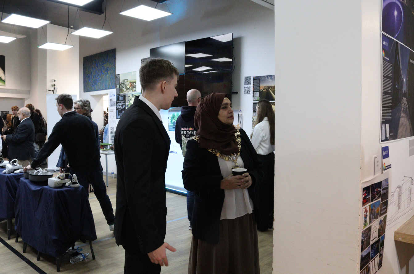 We were also honoured to welcome the Worshipful Civic Mayor of Tameside, Councillor Shibley Alam and her Consort, Mohammed Khairul Alam. They took time to explore the students’ work and even got involved in the virtual reality activities and were both highly impressed by the standard on display.