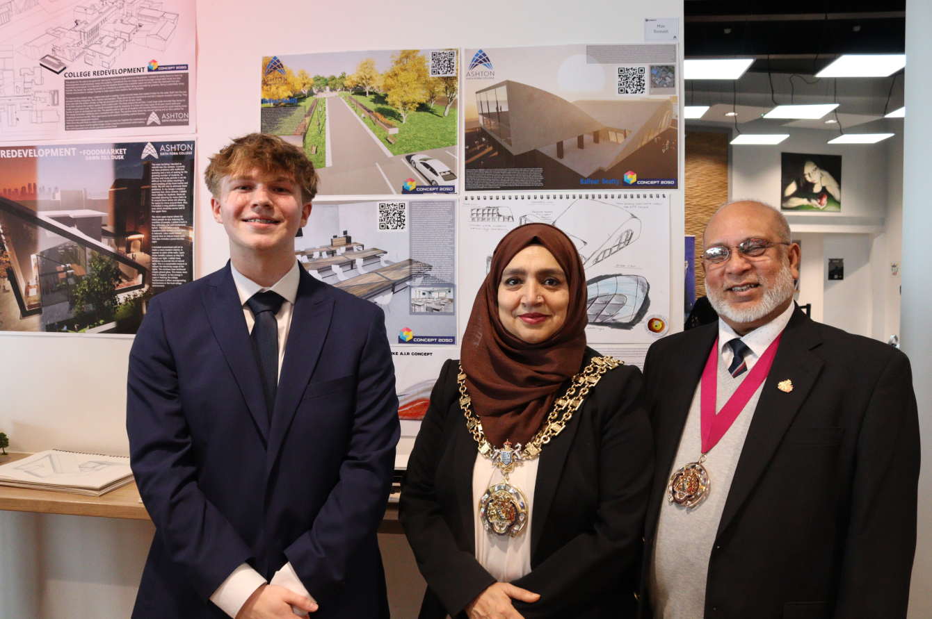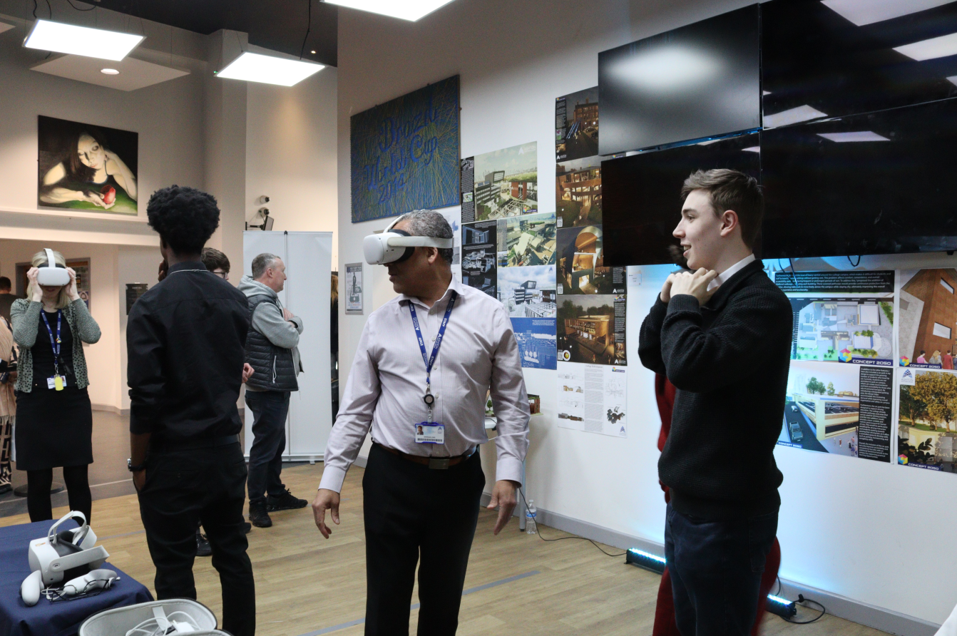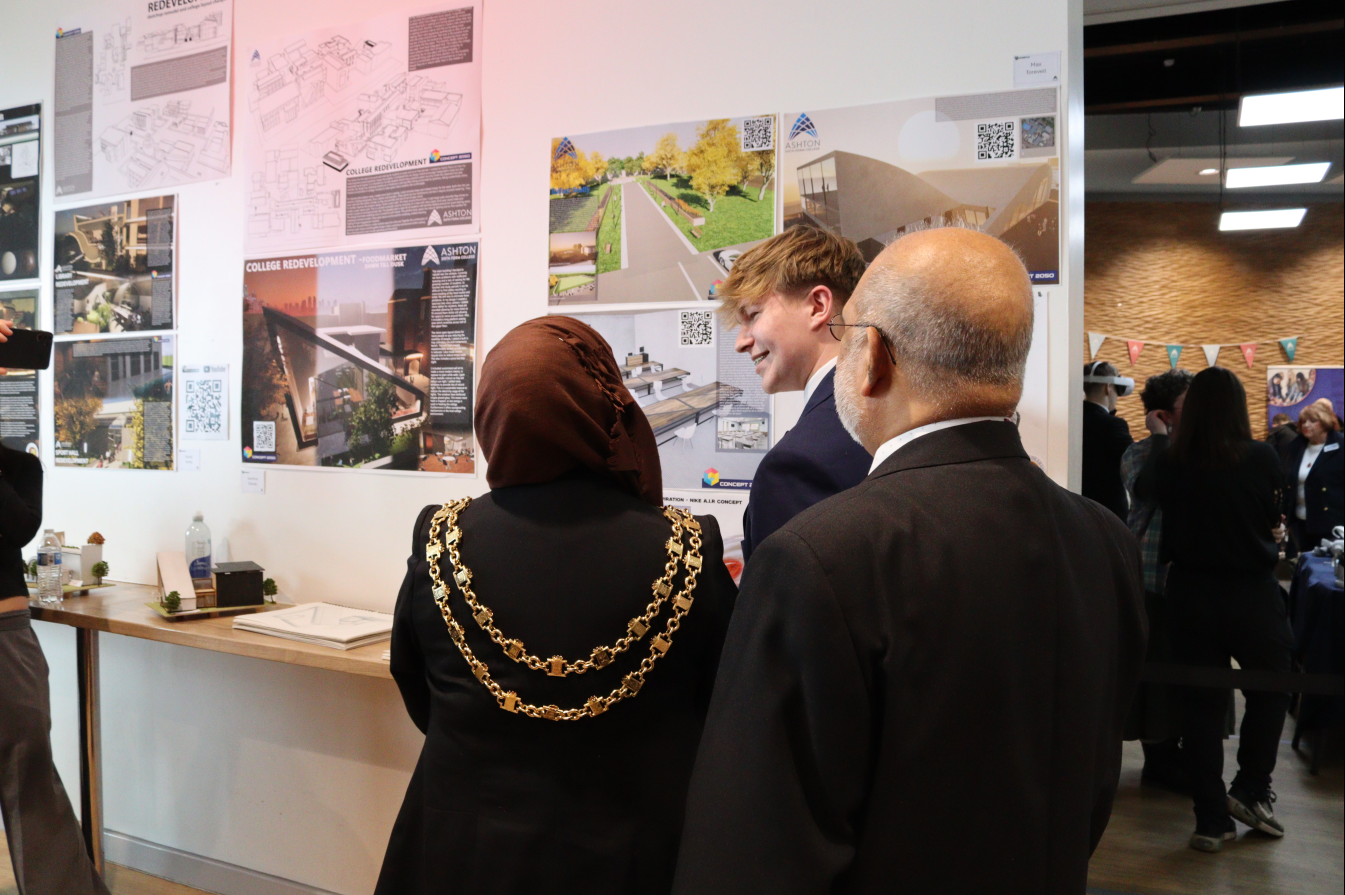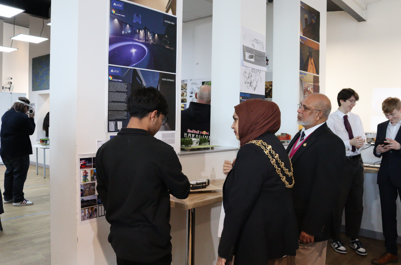 We were also honoured to welcome the Worshipful Civic Mayor of Tameside, Councillor Shibley Alam and her Consort, Mohammed Khairul Alam. They took time to explore the students’ work and even got involved in the virtual reality activities and were both highly impressed by the standard on display.
