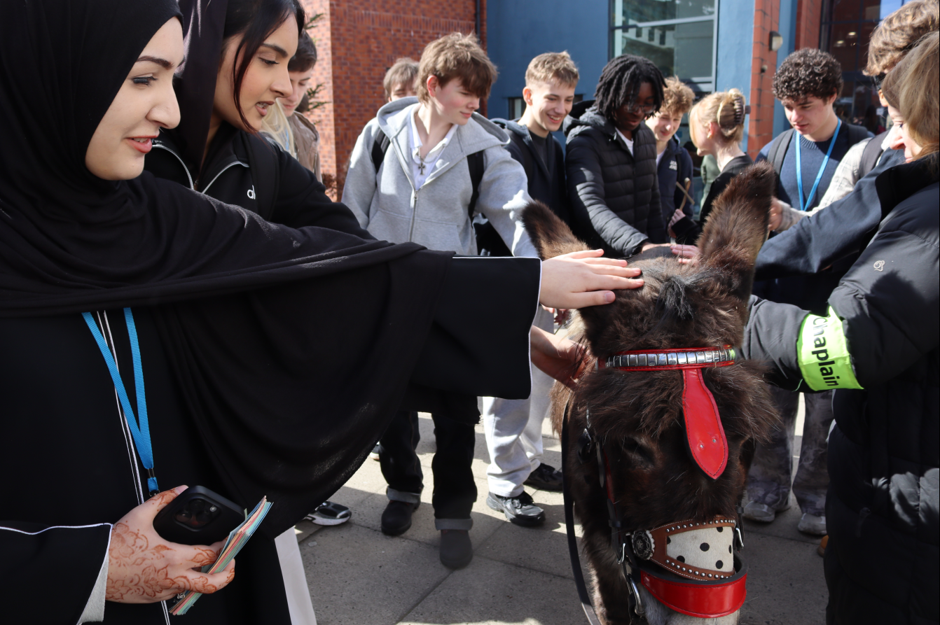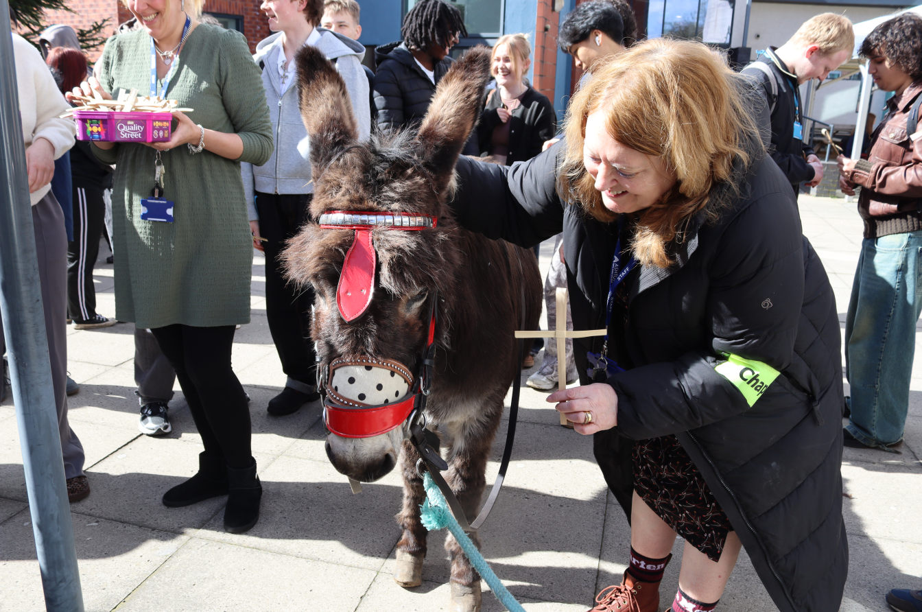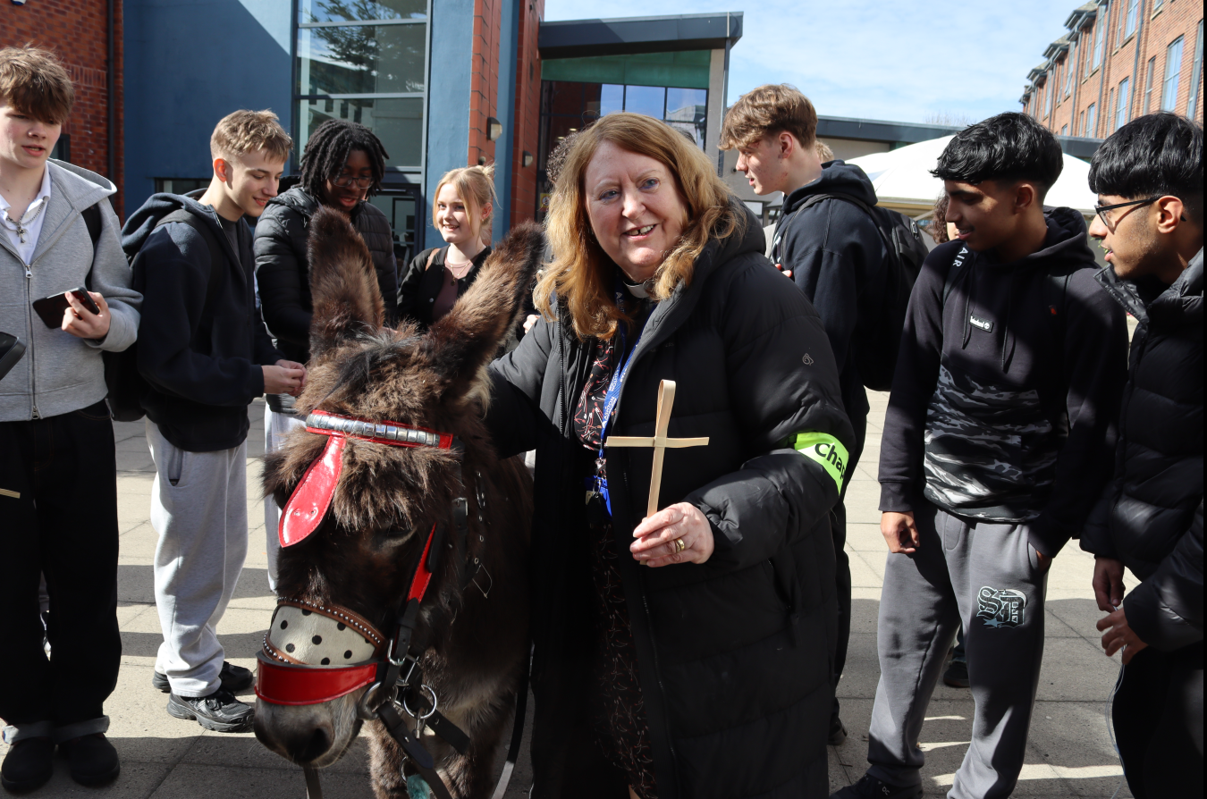 To celebrate Easter, we were delighted to welcome our former college chaplain, Rev Jean Hurlston, back into college alongside a very special guest, Georgie the Donkey.