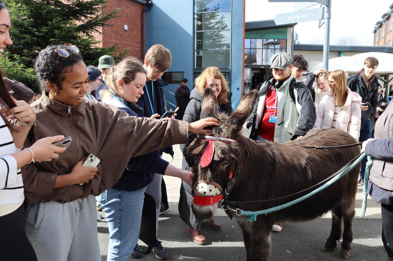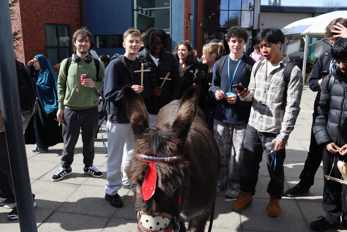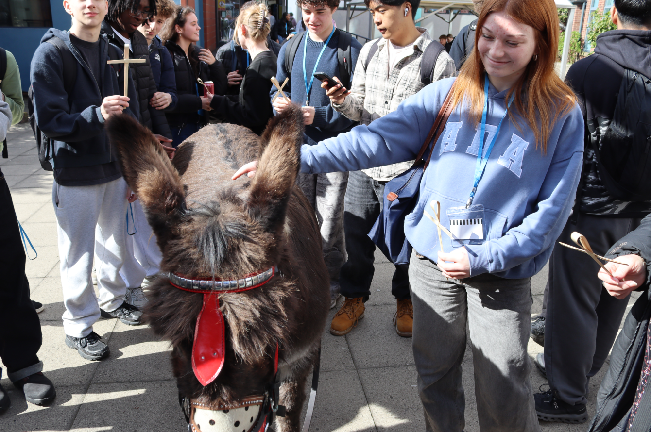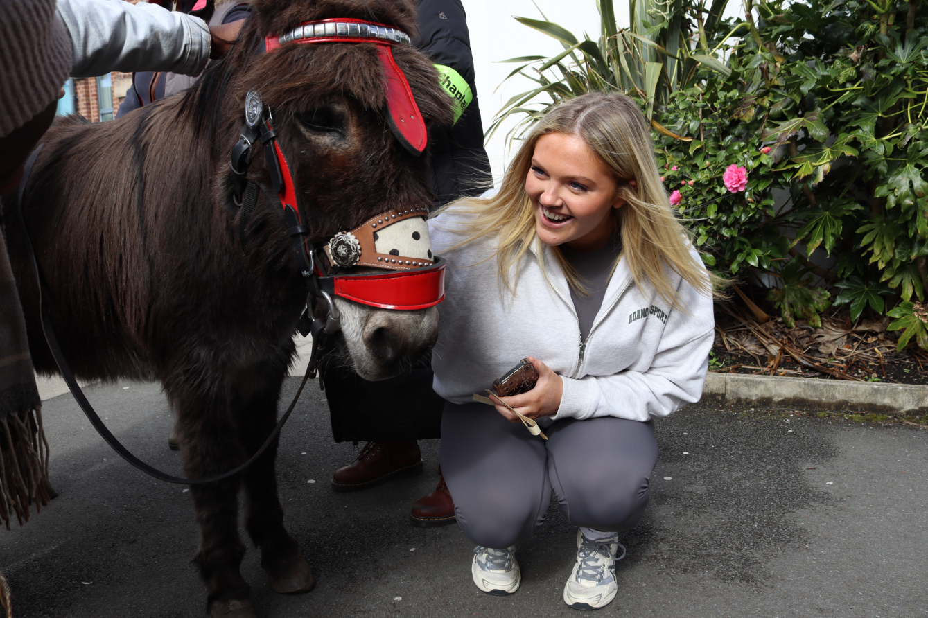 To celebrate Easter, we were delighted to welcome our former college chaplain, Rev Jean Hurlston, back into college alongside a very special guest, Georgie the Donkey.